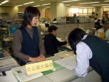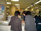 営業許可申請書の記入要領を説明したり、関連する業務の案内をしたり、忙しく窓口対応をする食品衛生協会支所窓口の職員 |