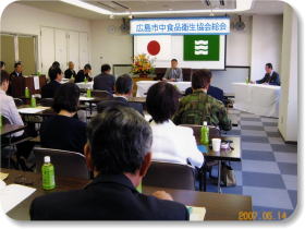 | 平成19年5月14日、広島市保健所3階大会議室において広島市中食品衛生協会平成19年度通常総会を開催しました。提案された5議案は全て承認される運びとなりました。 同日併せて、平成18年度食品衛生表彰式を開催し広島市中食品衛生協会長表彰と広島市保健所長表彰を行い、1名の優秀指導員と優良施設19施設に協会長表彰が、優秀指導員1名と3施設に優良施設の表彰状が贈呈されました。 |