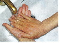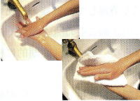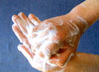 | 手指は、食品と直接接触する機会が多く、手指を汚染源とする食中毒を防止するた めに、常に清潔で、かつ衛生的に保たねばなりません。 手指の洗浄、消毒は、作業後や用便後はもとより器具などに接触した場合でも、そ のつど行ないましょう。 |